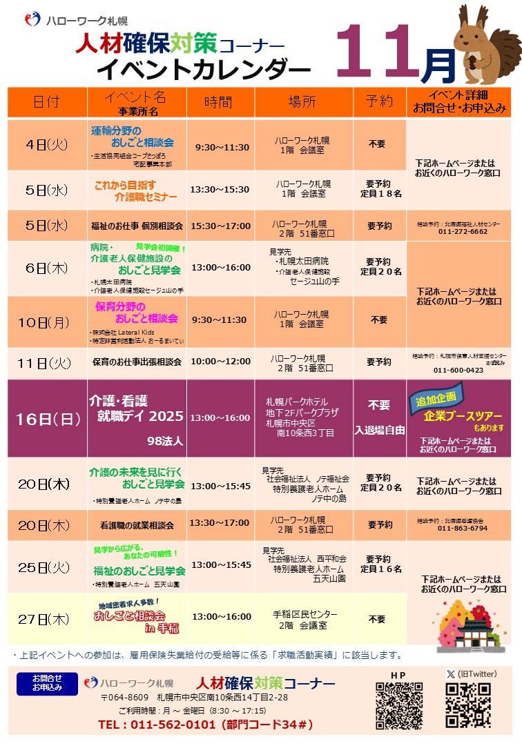 11月 5 日(水) 会場集合 ハローワーク札幌(※1)