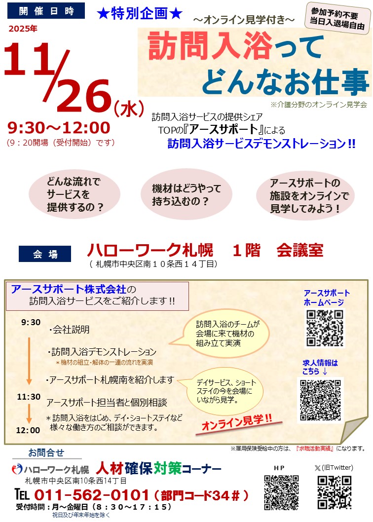 11/26(水)★特別企画★訪問入浴ってどんなお仕事