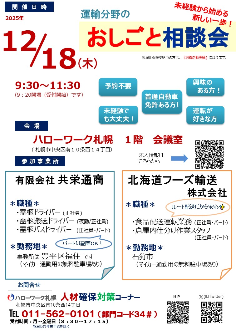 12/18(木)運輸分野のおしごと相談会
