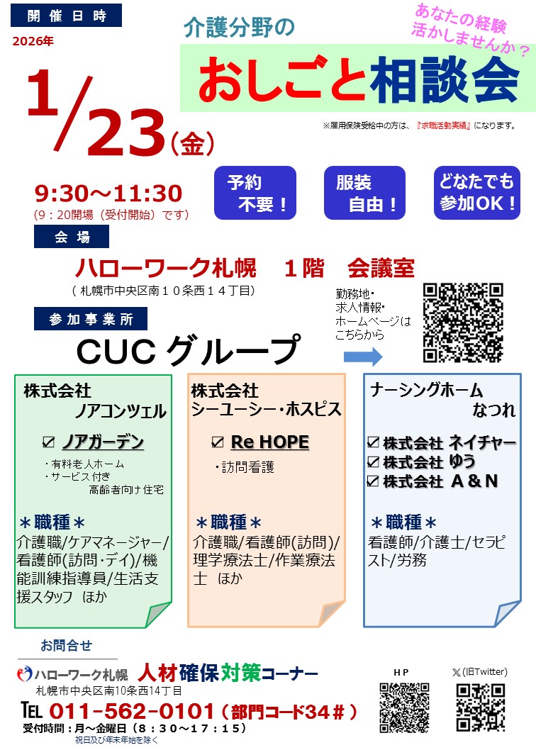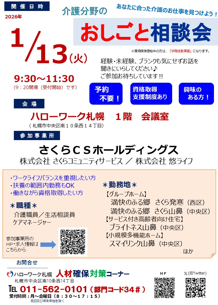 1/14(水)福祉のお仕事個別相談(北海道福祉人材センター主催)