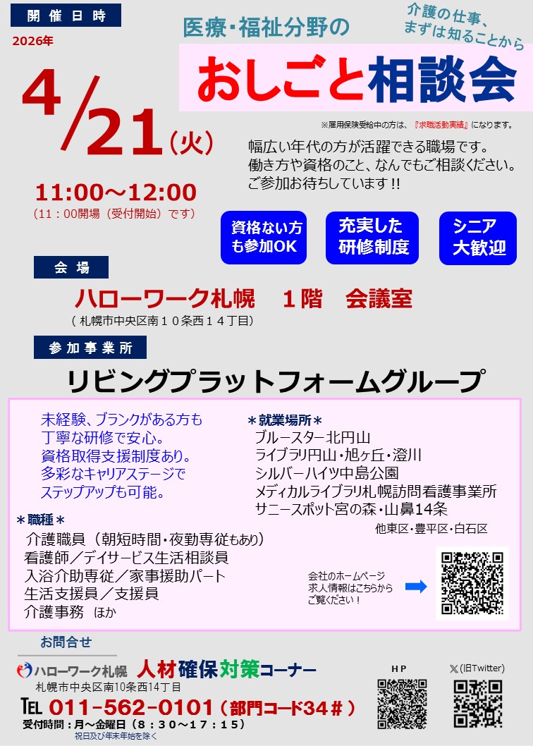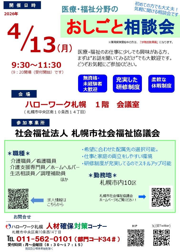 3/4(水)福祉のお仕事個別相談(北海道福祉人材センター主催)