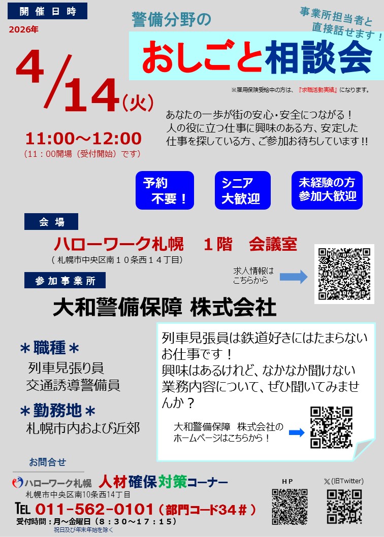 3/23(月)警備業就職支援セミナー&お仕事相談会