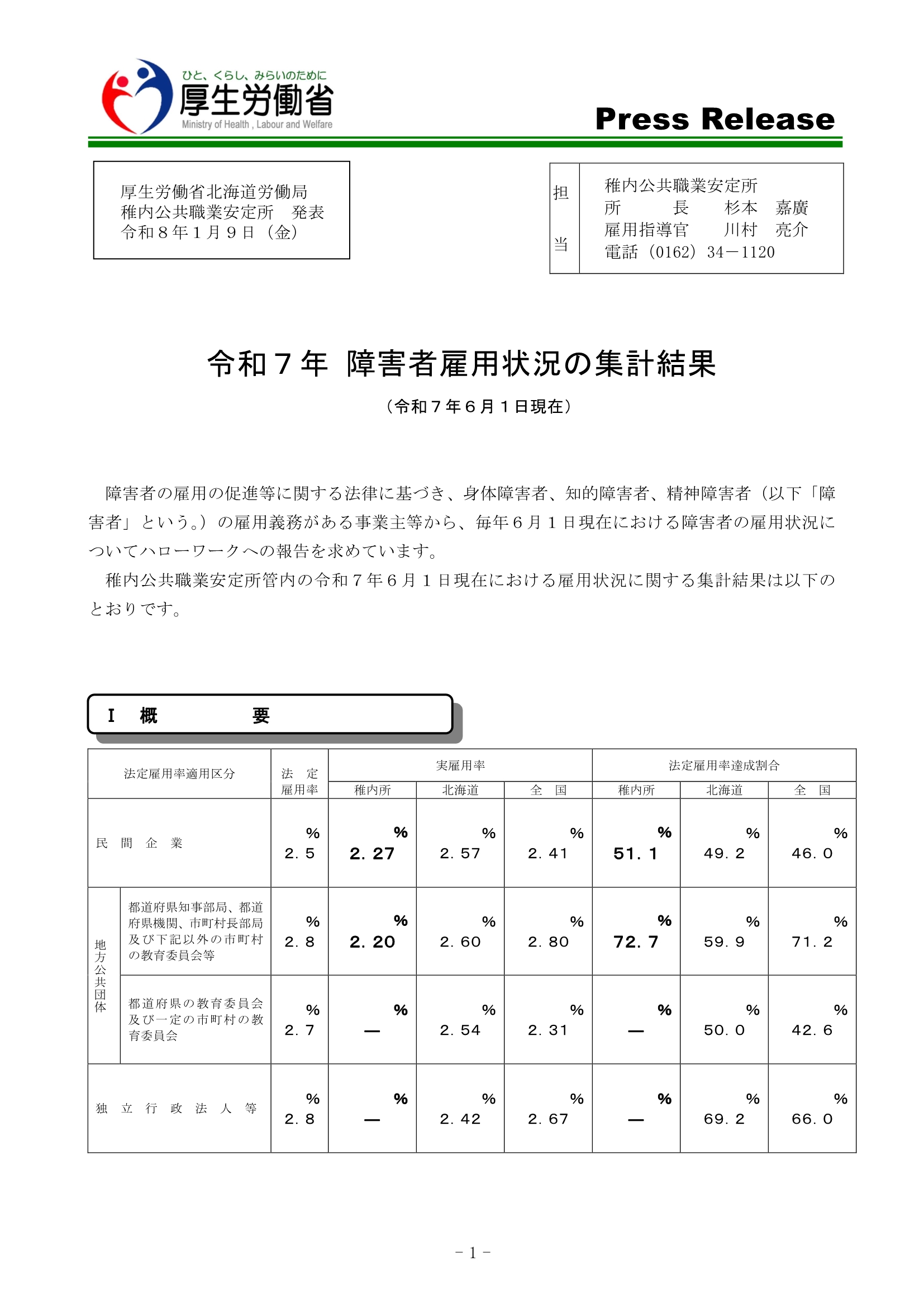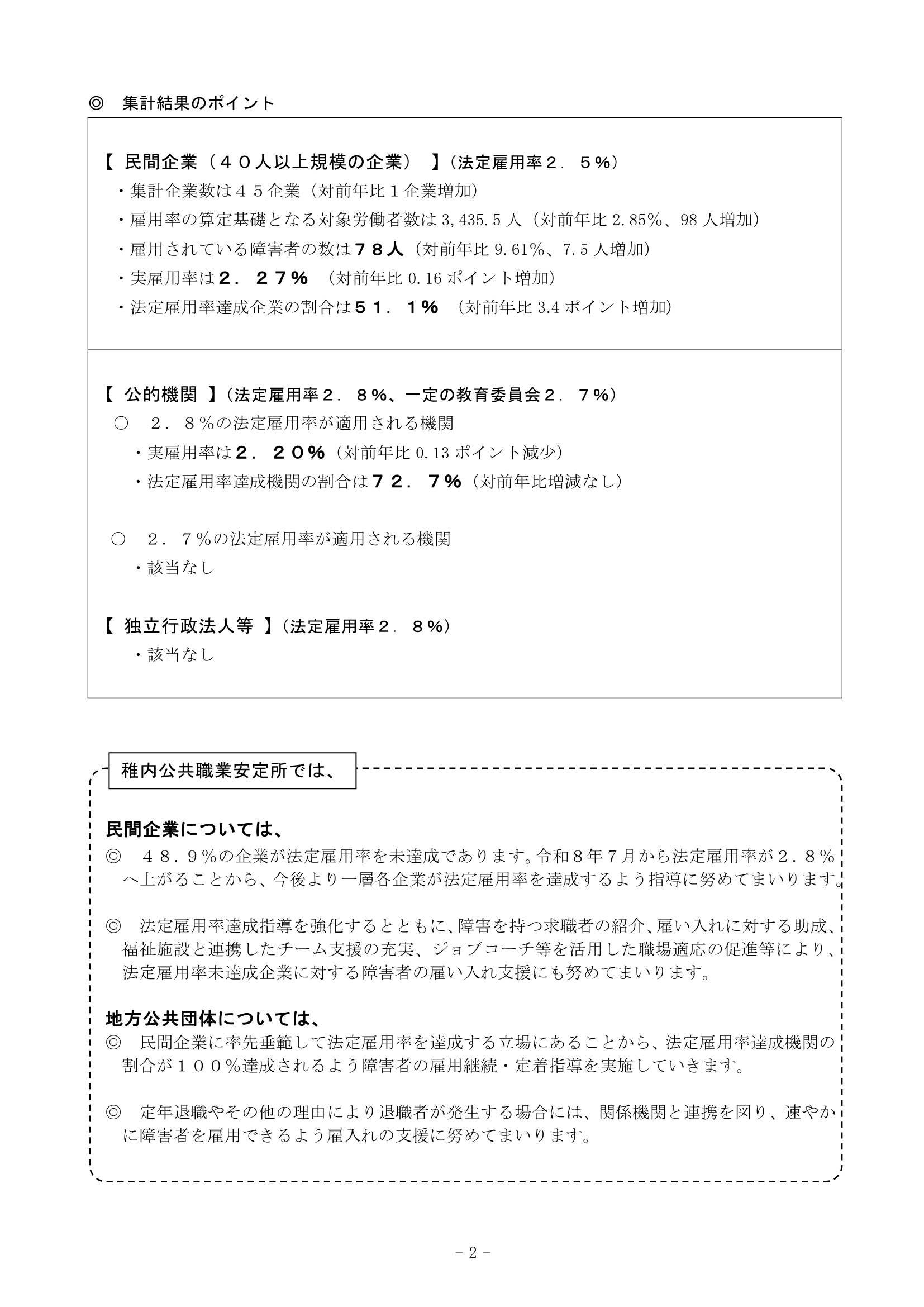令和7年度障害者雇用状況の集計結果です。(令和7年6月1日現在) PDFファイルはこちらからダウンロードできます。