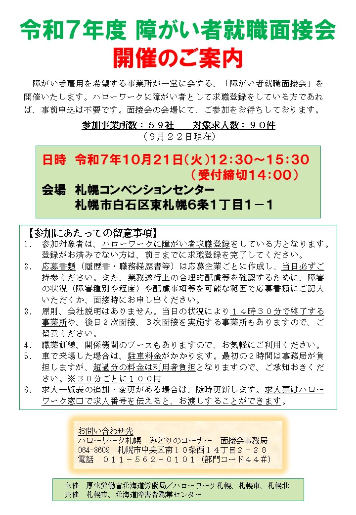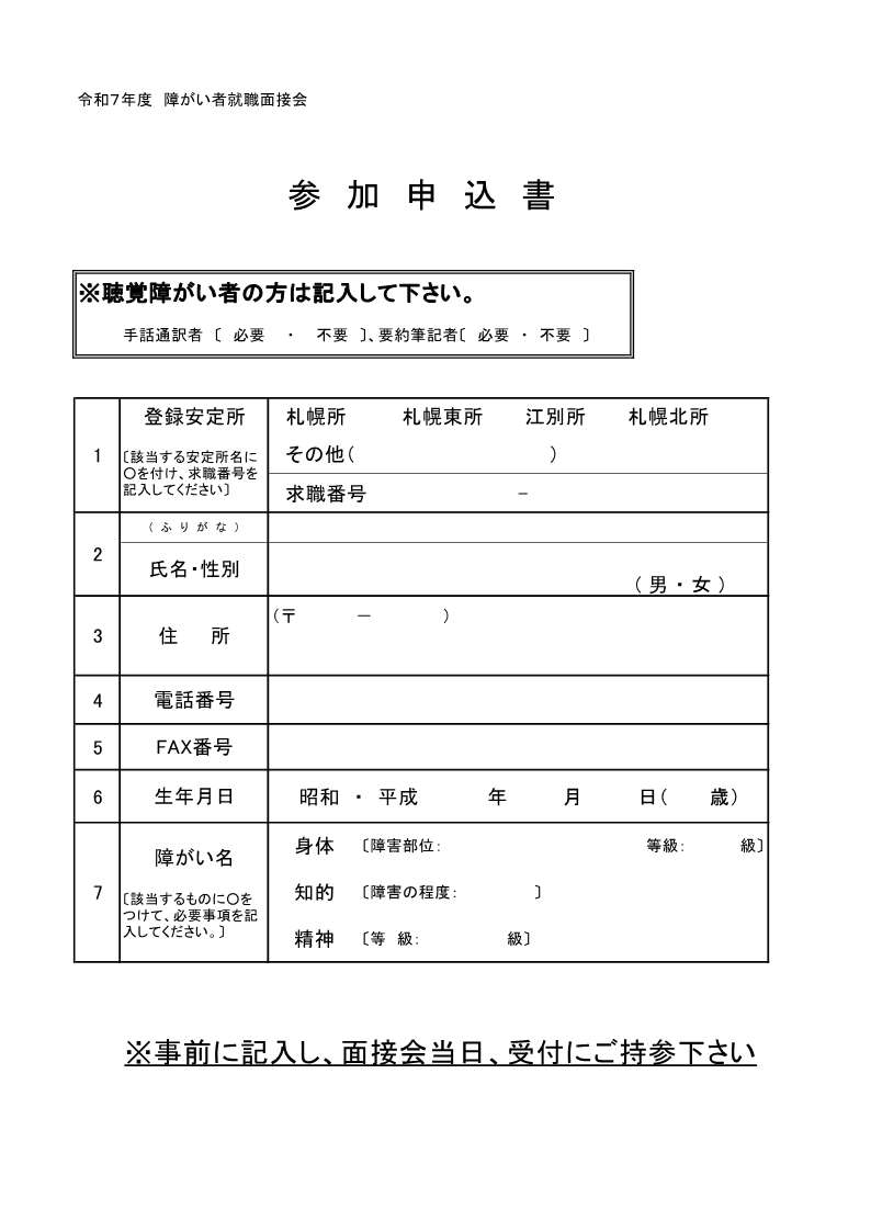 「令和7年度 障がい者就職面接会開催のご案内」をご一読いただき、