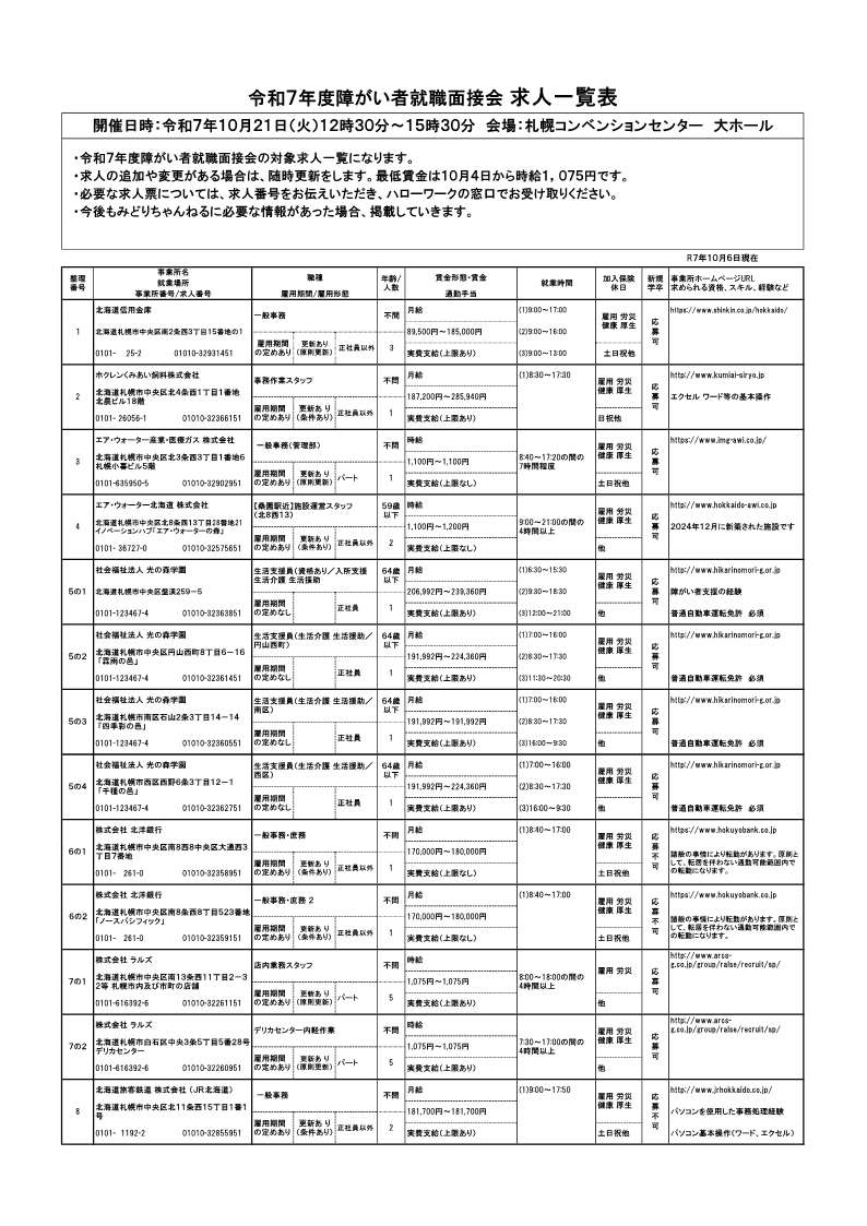 2024.10.25 令和6年度「障がい者就職面接会」の求人一覧【詳細版】の文字拡大版を掲載しました。面接会特設ページでご確認ください。