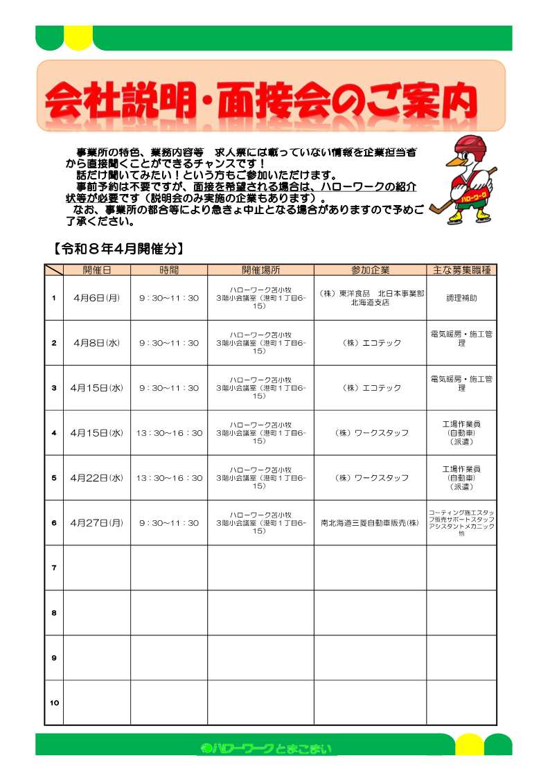 会社説明・面接会のご案内(令和8年4月)