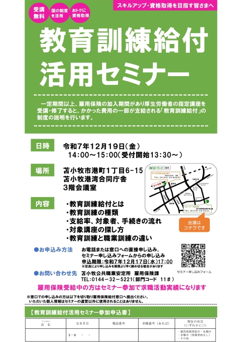 教育訓練給付活用セミナー(令和7年12月)の開催について
