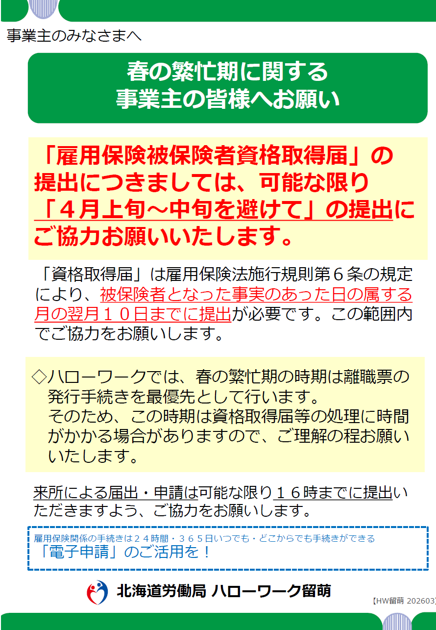 • 『春の繁忙期に関する事業主の皆様へお願い』[PDF形式:260KB]