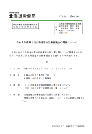北海道労働局総務部総務課総務企画官:業天 章裕課長補佐:落合 邦博 (電話) 011 (709) 2311(内線) 3529