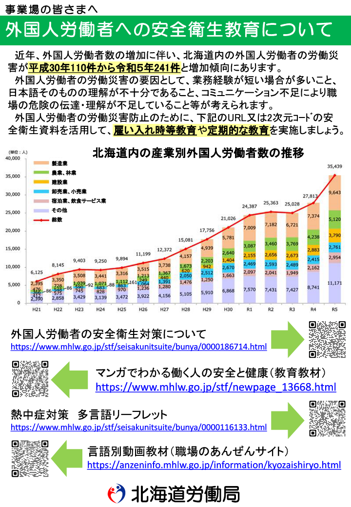- 厚生労働省のホームページ(外国人労働者の安全衛生対策について)も併せてご確認ください。