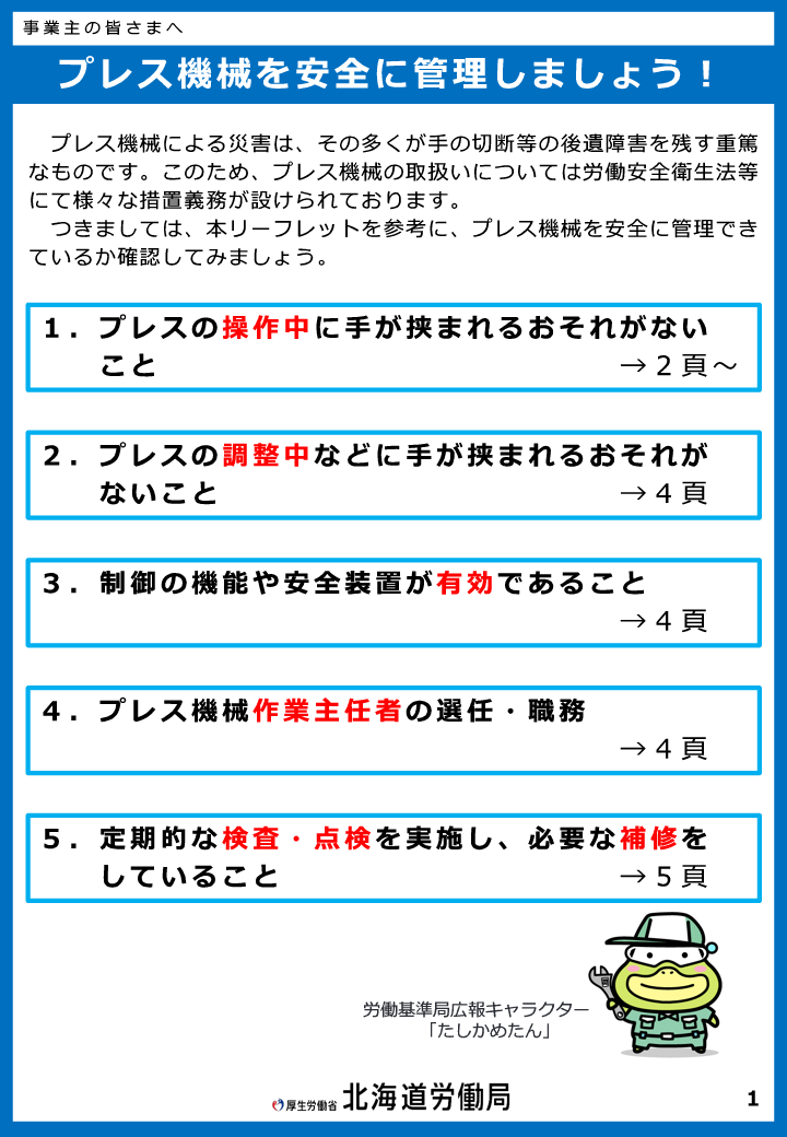 このリーフレットを参考に、プレス機械が安全に管理されているか確認しましょう