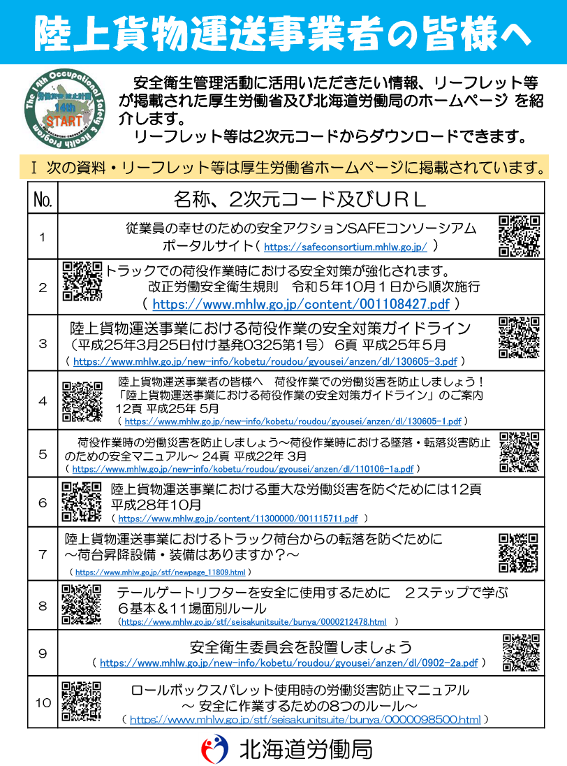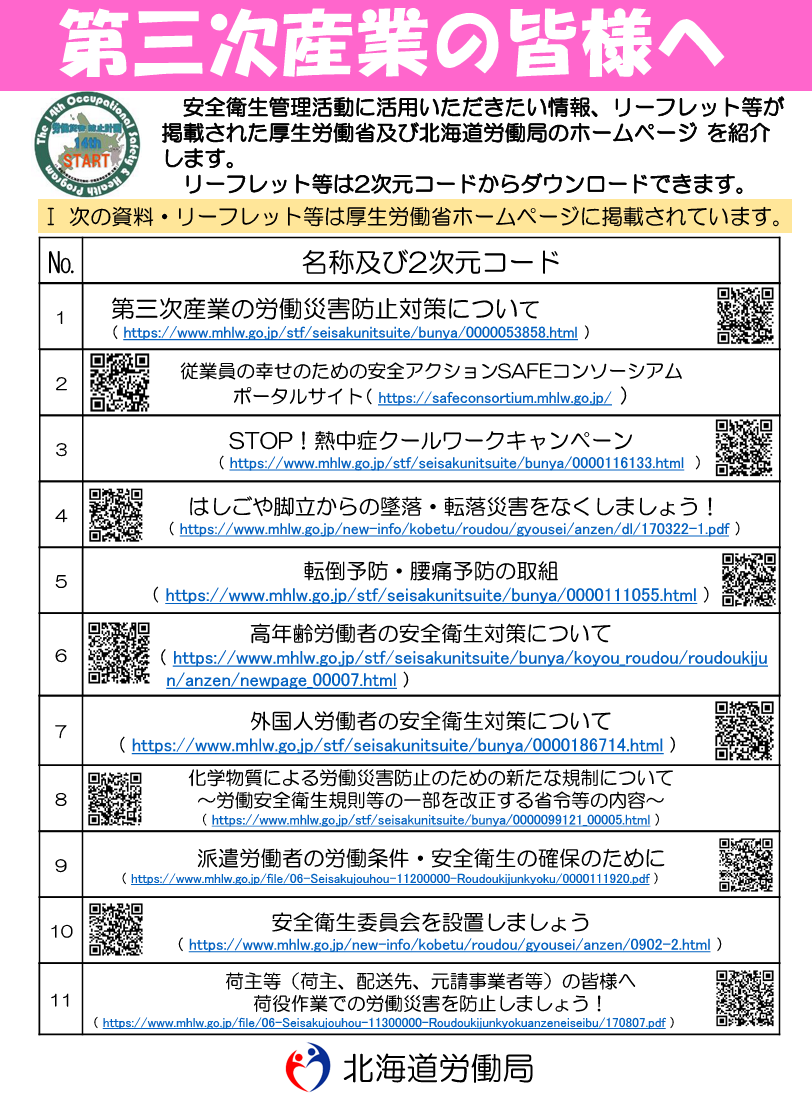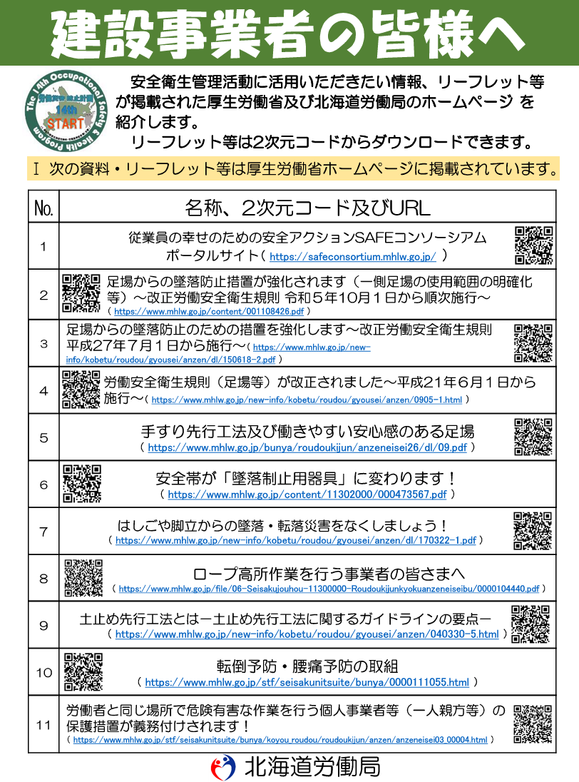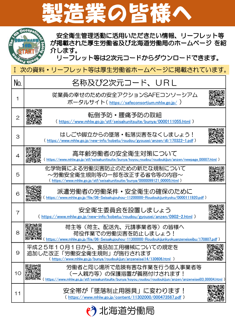 安全衛生に関するリーフレット等の一覧を掲載しておりますので、ご活用ください。