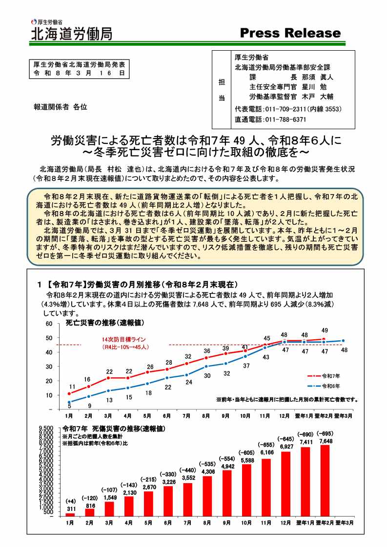 令和8年3月 「労働災害による死亡者数は令和7年49人、令和8年6人に」 バックナンバー
