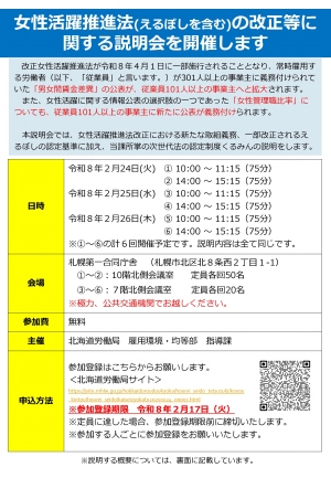 女性活躍推進法(えるぼしを含む)の改正等に関する説明会を開催します。