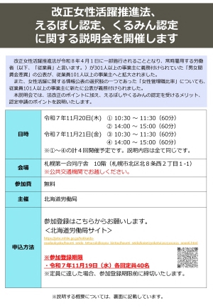 - 改正女性活躍推進法及びえるぼしくるみん説明会について