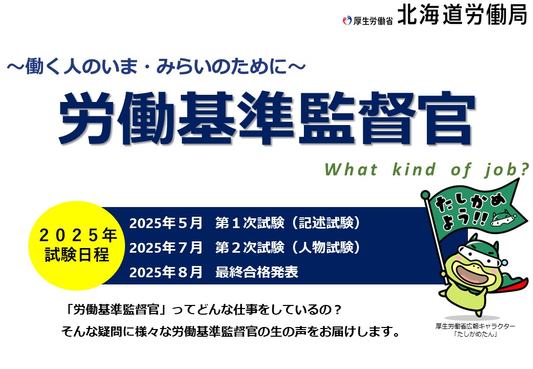 労働基準監督官は、毎年、人事院・厚生労働省が実施する「労働基準監督官採用試験」の合格者から採用されます。