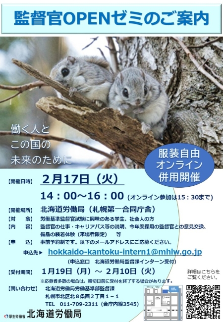 【申込先】hokkaido-kantoku-intern1★mhlw.go.jp(北海道労働局監督課インターン受付)