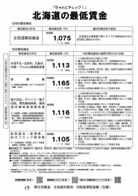 - 北海道鉄鋼業最低賃金は時間額1,165円(65円引上げ)に改定されます。