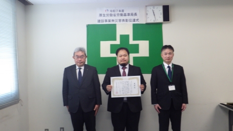 左 札幌支店長様 中央 工事主任様 右 北見労働基準監督署長