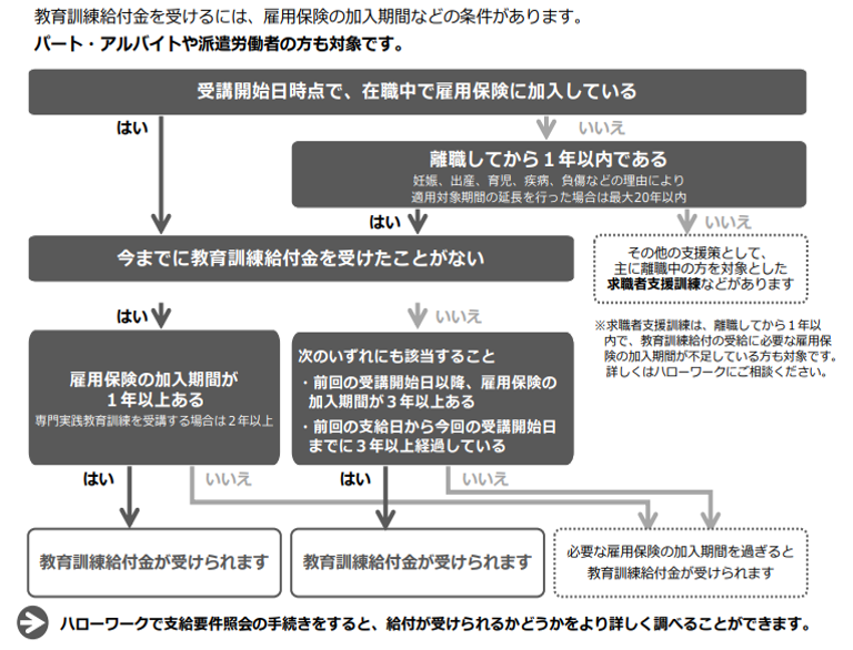 ※教育訓練給付の対象として厚生労働大臣の指定を受けている講座は、教育訓練講座検索システム