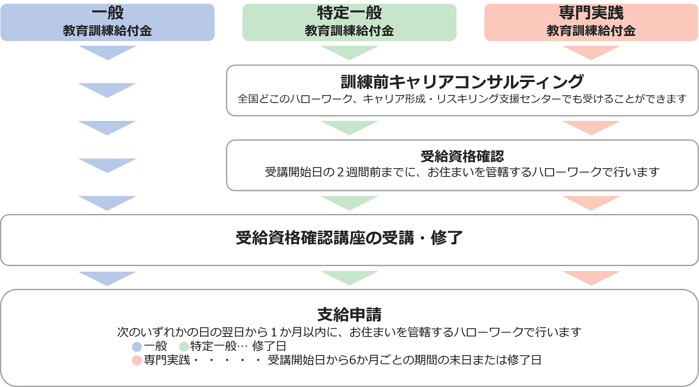 対象となる教育訓練は、そのレベルなどに応じて3種類あります。
