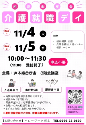 ・事前予約不要、参加料不要、複数事業所相談可能、相談のみ可能、雇用保険受給中の方は求職活動実績になります。