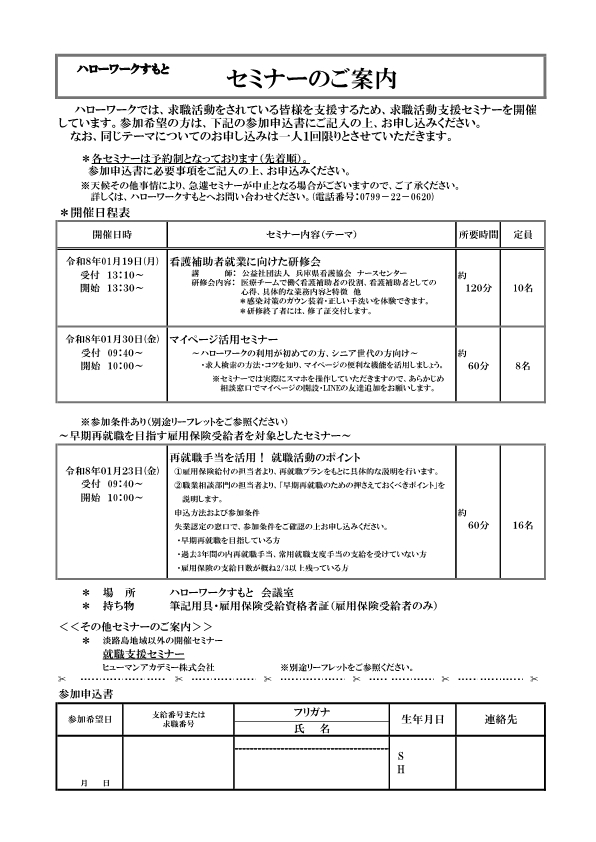 ※相談会当日、ハローワーク洲本総合案内にお越しください。