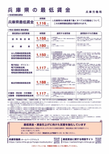 兵庫県最低賃金 A4版リーフレット(労働局版) |