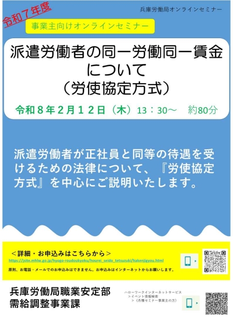・『派遣労働者の同一労働同一賃金について(労使協定方式)』セミナー資料 (PDF)