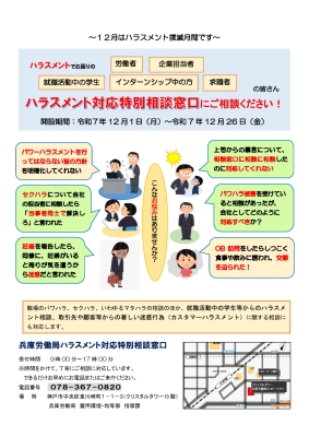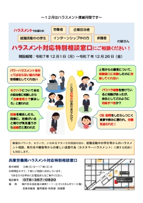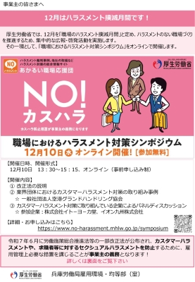 12月は職場のハラスメント撲滅月間です