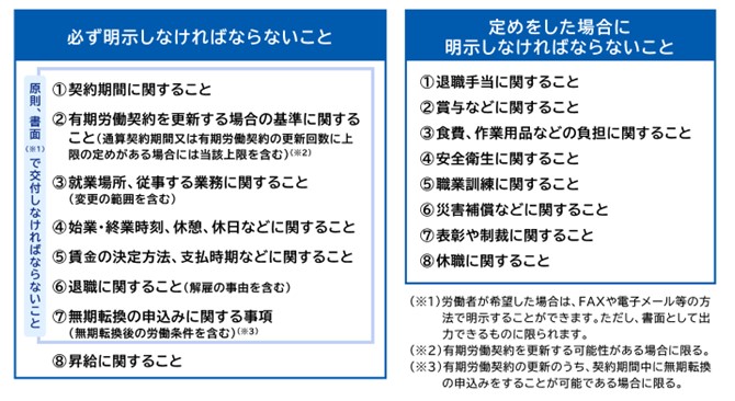1. 使用者が労働者を雇用するときは、賃金や労働時間等の労働条件を書面などで明示しなければなりません。