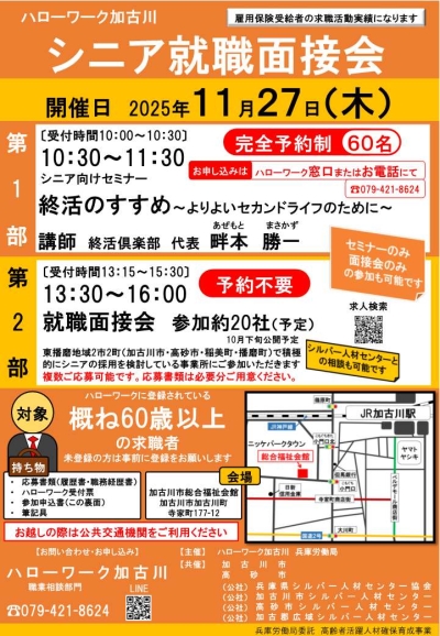 11月27日(木)開催! ハローワーク加古川「シニア就職面接会」について