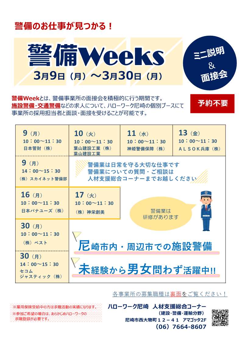 警備業界の事業所9社を集めたミニ説明会&面接会を開催します。