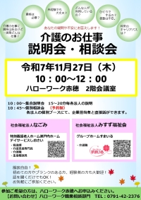 ▶【求職者の方】介護のお仕事 説明会・相談会のお知らせ! NEW! ★日 時★ 11月27日(木) 10:00~12:00