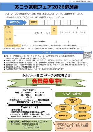 ▶【あこう就職フェア2026】のご案内! NEW! 求人者と求職者が一堂に会する就職相談・面接会です! |