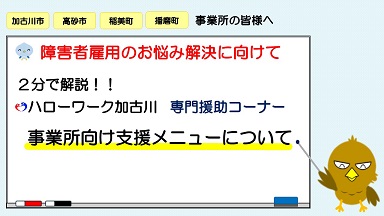 ハローワーク加古川専門援助コーナーについて2分で紹介しています。