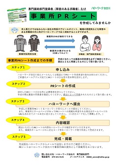 PRシート作成により、求人票だけでは伝わらない会社の特長やアピールポイント、職場の雰囲気などを障害のある求職者の方に向けてハローワークで広く周知することができます。
