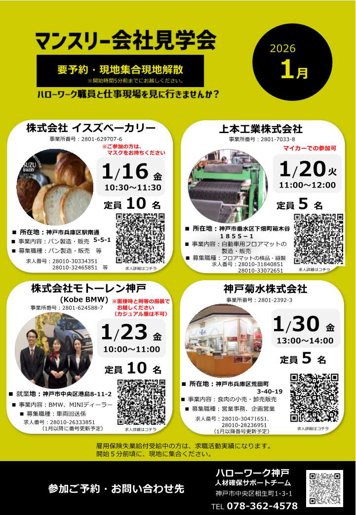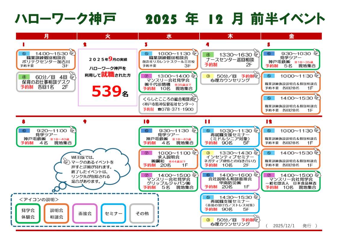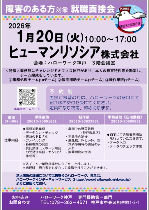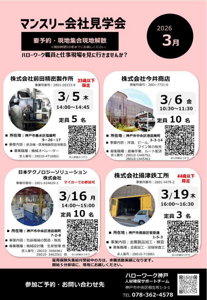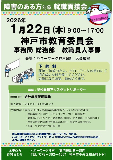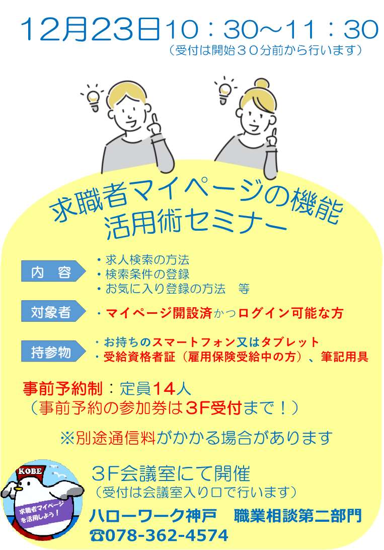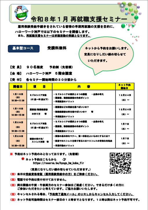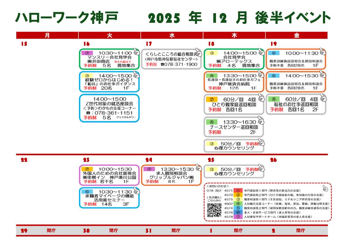 - ハローワーク神戸からのお知らせ >