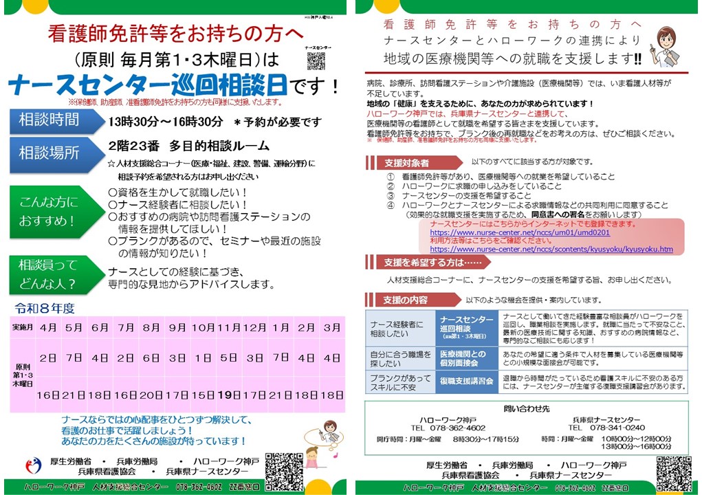 〇第1・3木曜日に、ハローワークでナースセンターの相談員と相談することができます。