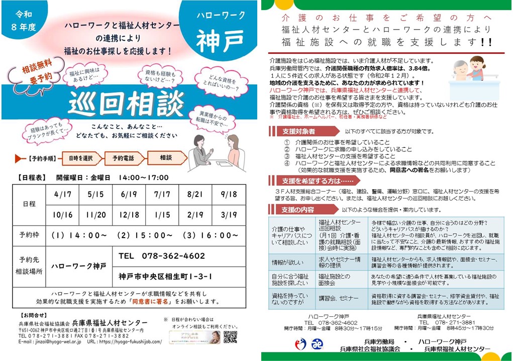 〇第3金曜日に、ハローワークで福祉人材センターの専門員と相談することができます。