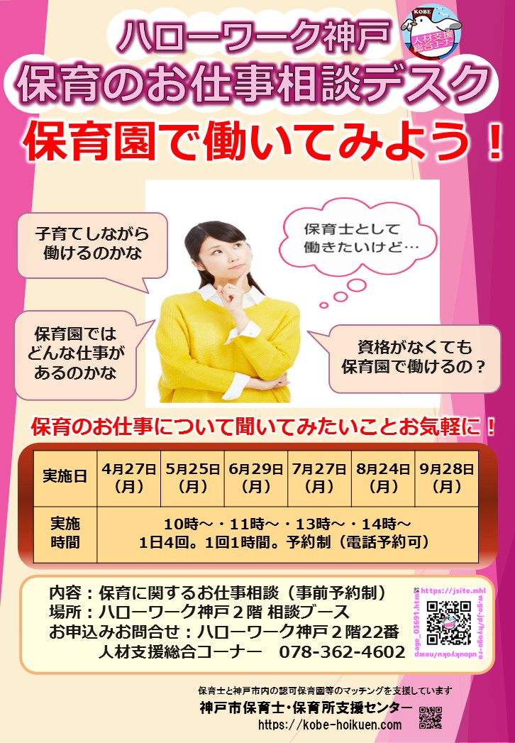 保育の分野に関する疑問に答えたり、求人情報の提供をしています。