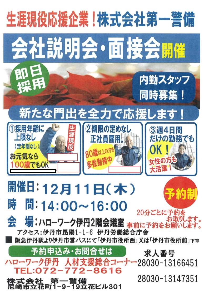 ・令和7年12月18日(木)「HOT!ジョブミーティング&相談面接会(伊丹)」について NEW ・令和7年12月11日(木)「警備の会社説明会・面接会(株式会社第一警備)」について NEW ・令和7年12月4日(木)「マザーズコーナーオンライン個別相談会」について