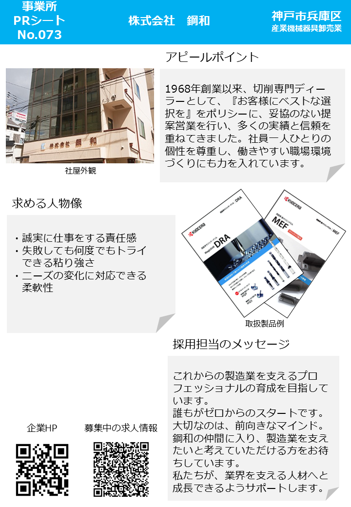 PRシートの掲載があっても、現在は募集中の求人がない場合もありますのでご了承ください。