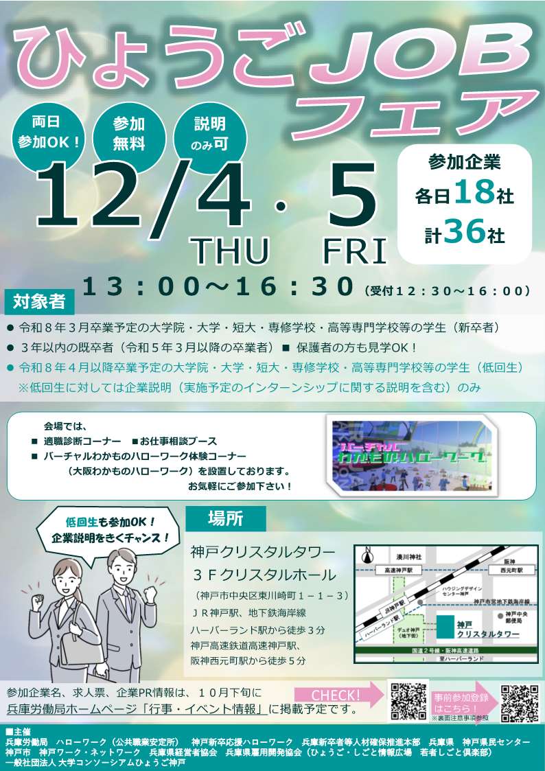 - (12月4日・5日開催)「新規大卒者等対象就職面接会 ひょうごJOBフェア2025」について