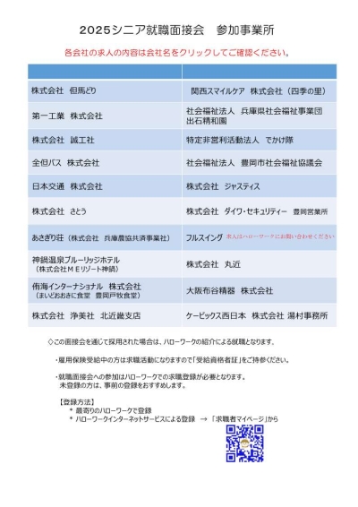 - (12月3日開催)ハローワーク豊岡「シニア就職面接会」について