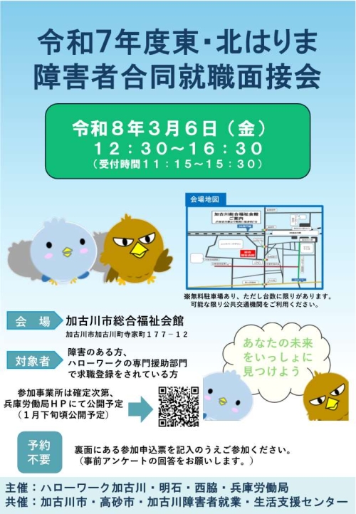 - 令和7年度 第2回「東・北はりま障害者合同就職面接会」の開催について