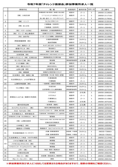 - (令和8年2月27日開催)ハローワーク姫路「チャレンジ面接会」の開催について