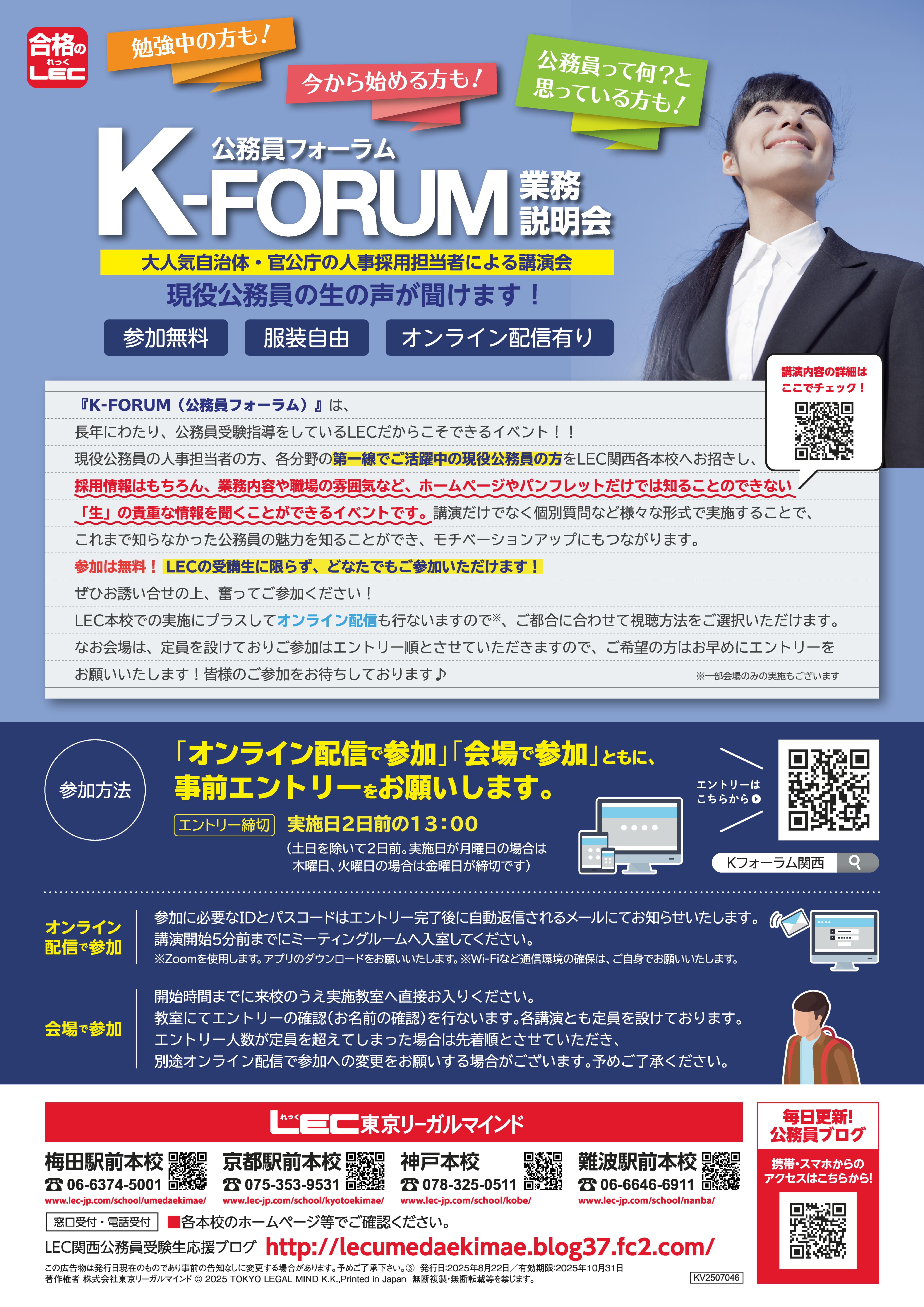 Kフォーラム[現役公務員が語る生の声]関西実施 - 公務員試験|資格の予備校 LEC東京リーガルマインド