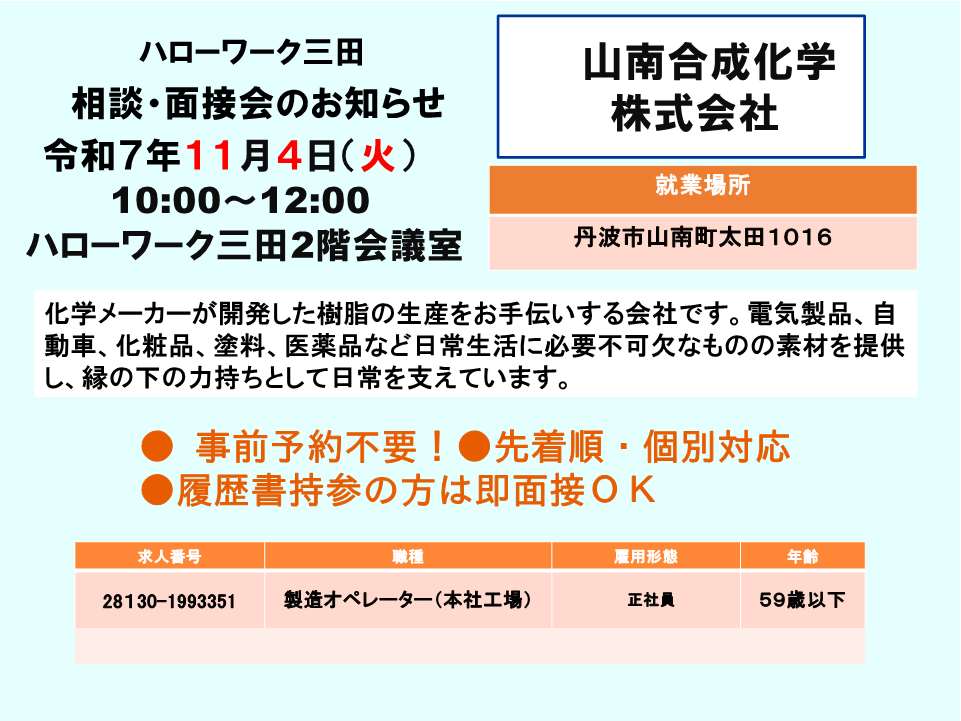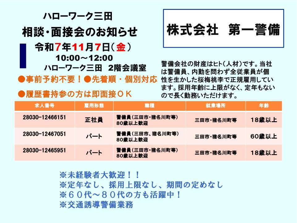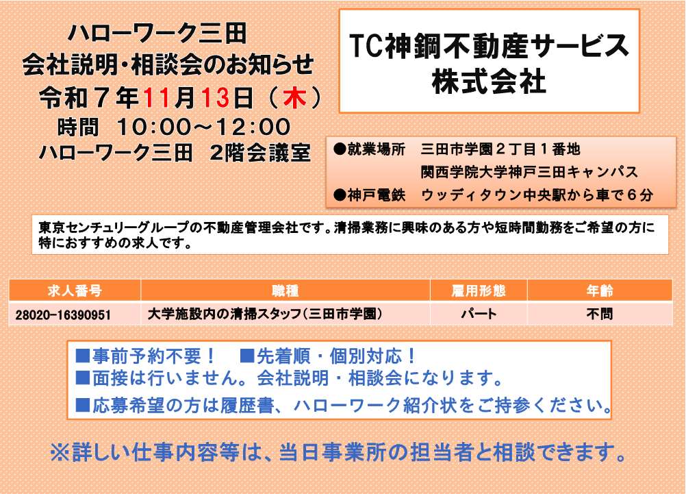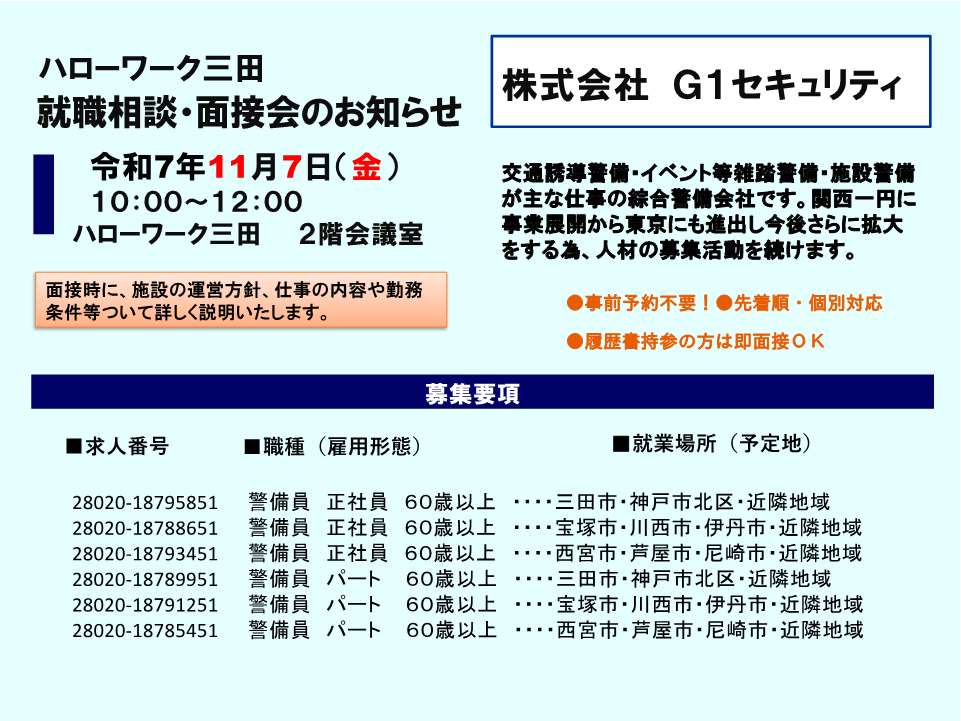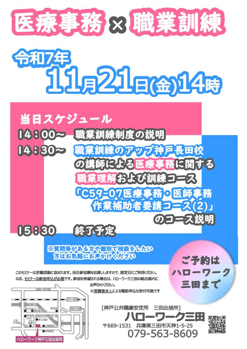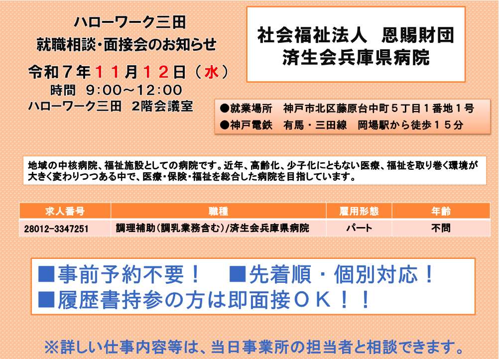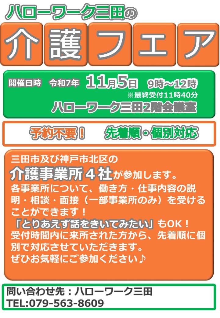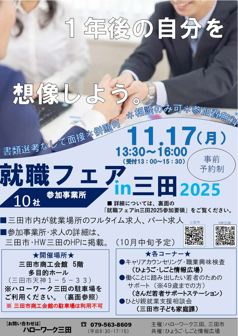 ※予約制です。ご予約はハローワーク三田まで
