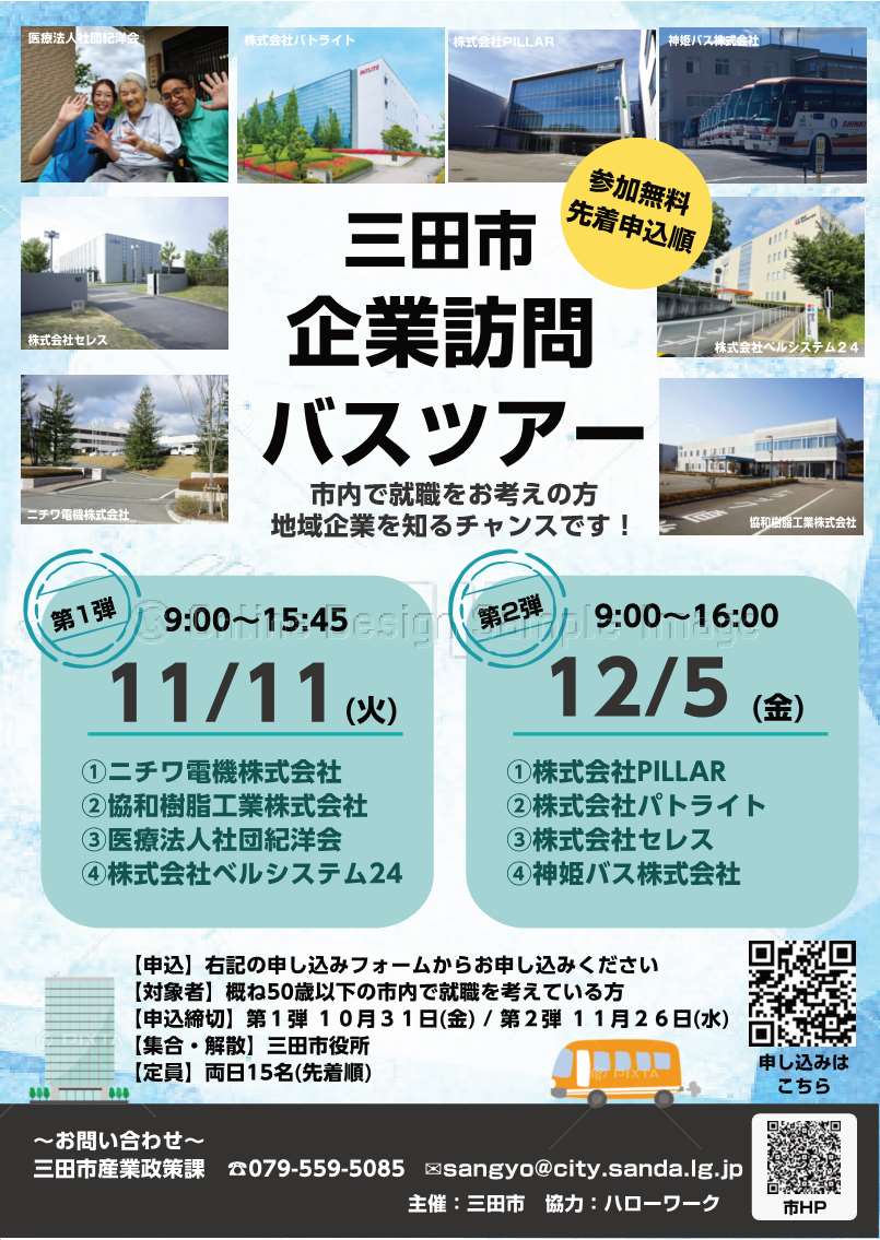三田市企業訪問バスツアー ※集合・解散は三田市役所です。